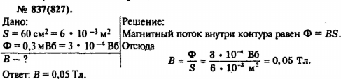 Магнитный поток внутри контура, площадь поперечного сечения которого 60 см2, равен 0,3 мВб. Найти индукцию поля внутри контура. Поле считать однородным и перпендикулярным плоскости проводника.