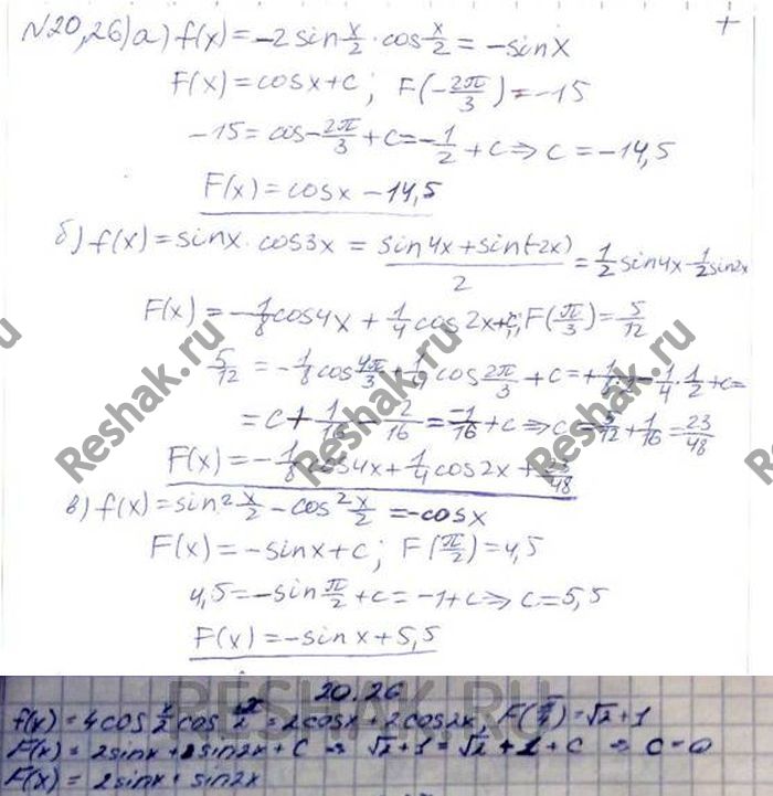 20.26 а)f(x)=-2sin(x/2)cos(x/2), F(-2Пи/3)=-15;