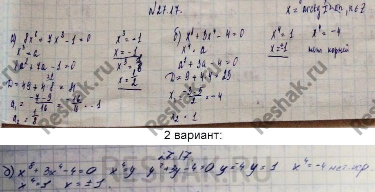 27.17. а) 8х6 + 7Х3 - 1 = 0; б) х8 + 3х4 - 4 = 0.