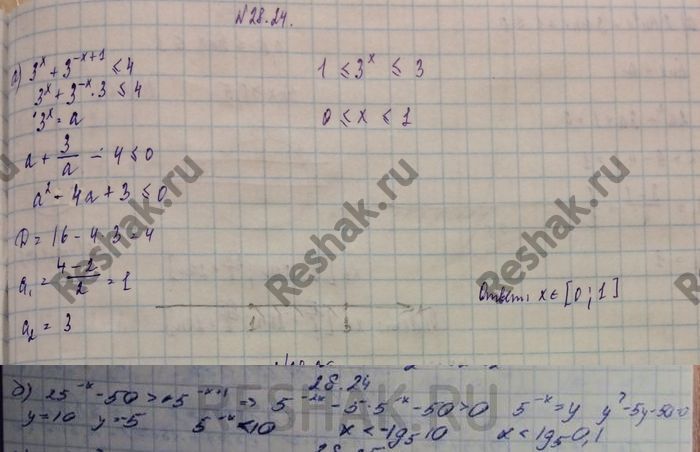 28.24 а)3x+3(-x+1) меньше или равно 4; б)25^-x - 50 > 5(-x+1).