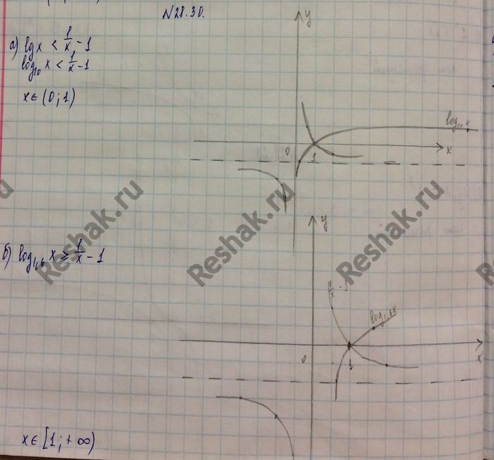 28.30 а)lgx меньше 1/x - 1;б)log1,6(x) больше или равно 1/x - 1.