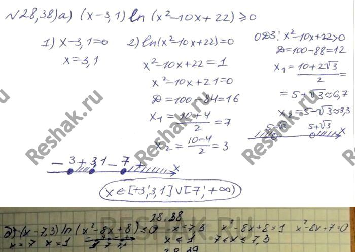 28.38. а) (х - 3,1) ln (х2 - 10x + 22) больше или равно 0;