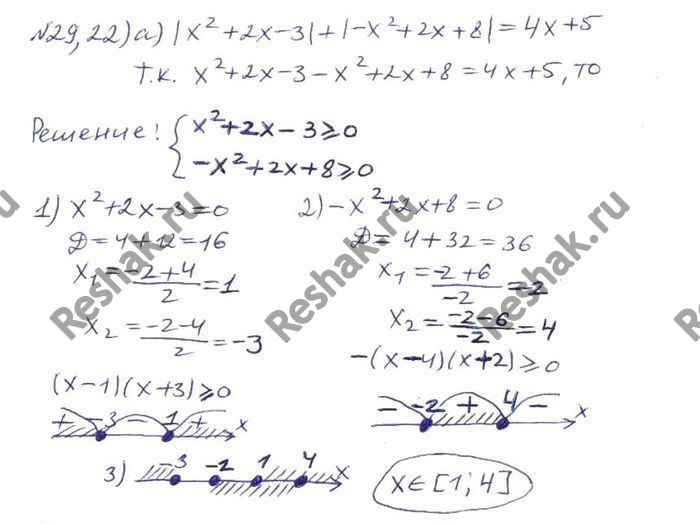 а)|x2+2x-3|+|-x2+2x+8| = 4x+5;