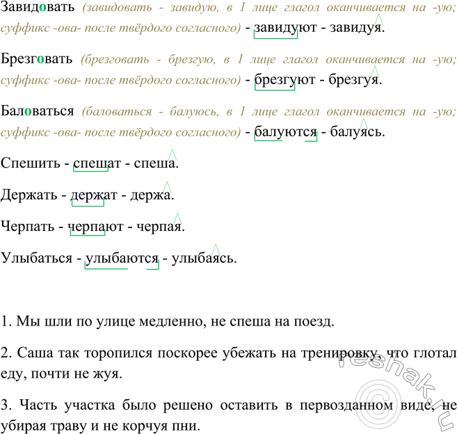 Ржаветь — ржавеют — ржавея; черпать, улыбаться.