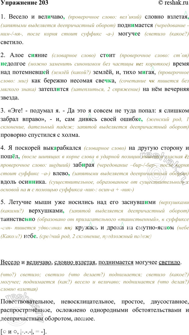 1. Весело и вел..чаво словно взлетая подн..мается могуч..е светило.4 2. Алое с..яние ст..ит (не)долгое время над потемневш..й землёй, и, тихо м..гая как бережно несомая сиять свеч(?)ка, затепл..тся на нём вечерняя звезда. 3. Я поскорей выкарабкался на другую сторону и пош..л заб..рая влево вдоль оси(н, нн)ика. 4. Летучие мыши уже носились над его заснувшими2 верхушками таинстве(н, нн)о кружась и дрожа на смутно-ясн..м неб...