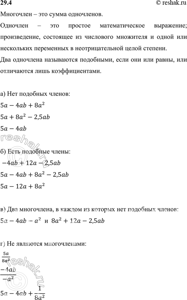 Упр.29.4 ГДЗ Мордкович 7 класс (Алгебра)