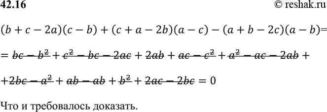 (b + с - 2а)(с - b) + (с + а - 2b)(а - с) - (а + b - 2с)(а - b) тождественно равно нулю.