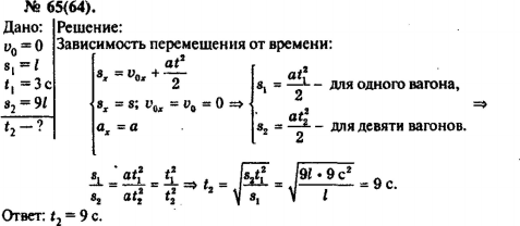 Первый вагон трогающегося от остановки поезда проходит за 3 с мимо наблюдателя, находившегося до отправления поезда у начала этого вагона. За какое время пройдет мимо наблюдателя весь поезд, состоящий из 9 вагонов? Промежутками между вагонами пренебречь.