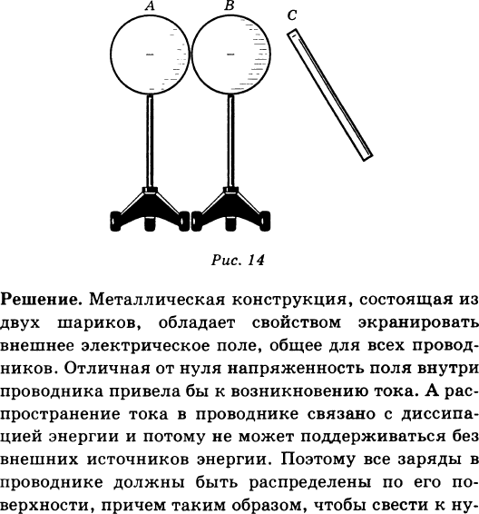 Металлические шары, помещенные на изолирующих подставках, привели в соприкосновение и зарядили отрицательно (рис. 75). Поместив на некотором расстоянии отрицательно заряженную палочку, шар А отодвинули и палочку убрали. Доказать рассуждением, что шар А всегда заряжен отрицательно, а шар В в зависимости от расстояния ВС может быть заряжен отрицательно, остаться нейтральным или зарядиться положительно.