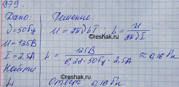 №979 ГДЗ Рымкевич 10-11 класс (Физика)
