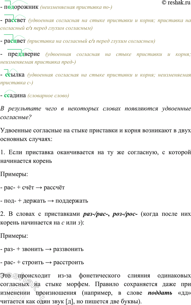 Удвоенные согласные на стыке приставки и корня возникают в двух основных случаях: