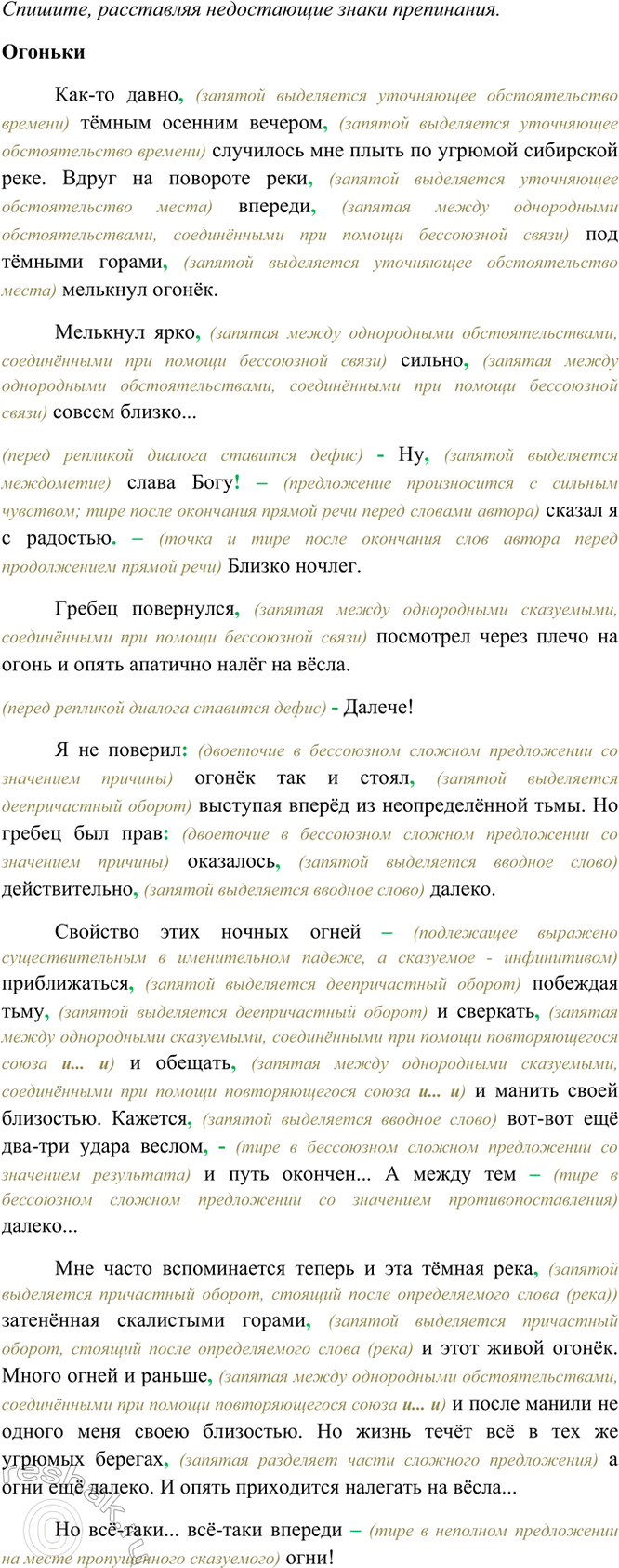 502. Прочитайте. Объясните смысл заглавия текста. В каких значениях выступает в нём слово огоньки? Найдите в тексте тропы, определите их роль в произведении. Спишите, расставляя недостающие знаки препинания.