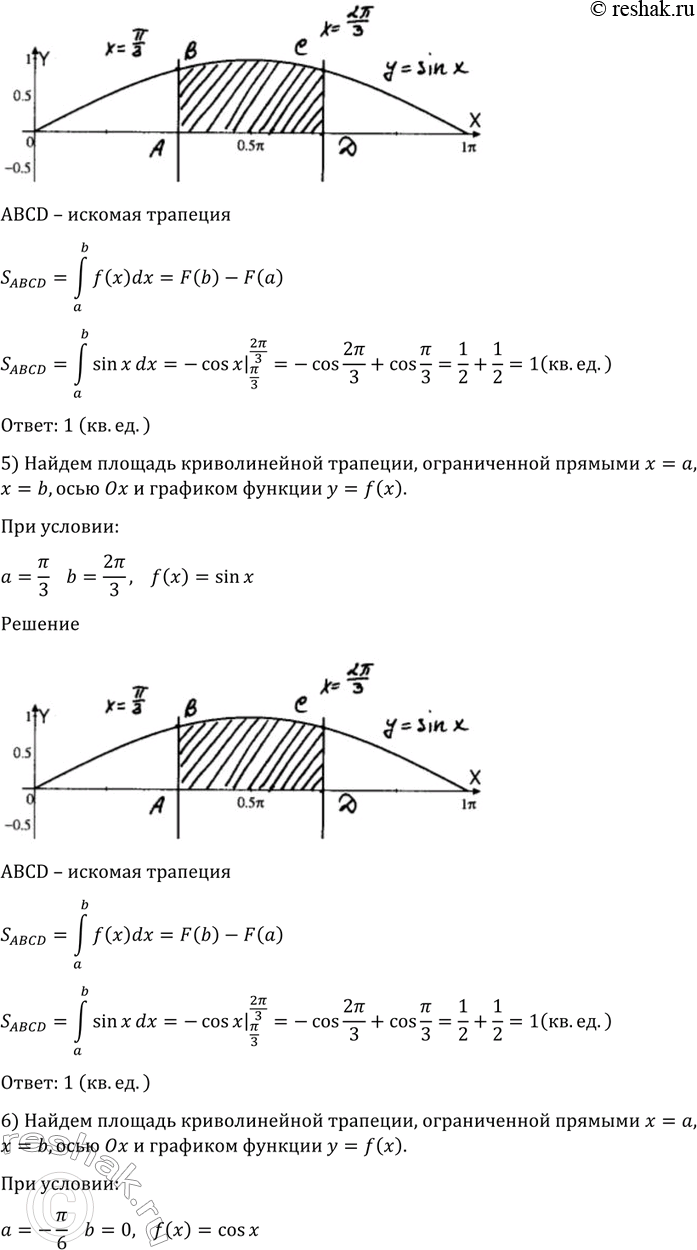 5)а= пи/3, b = 2пи/3, f(x) = sinx;