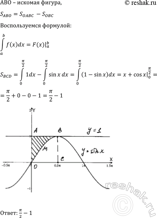 2) прямой у = 1, осью Оу и графиком функции у = sin х при 0 < =x < = пи/2