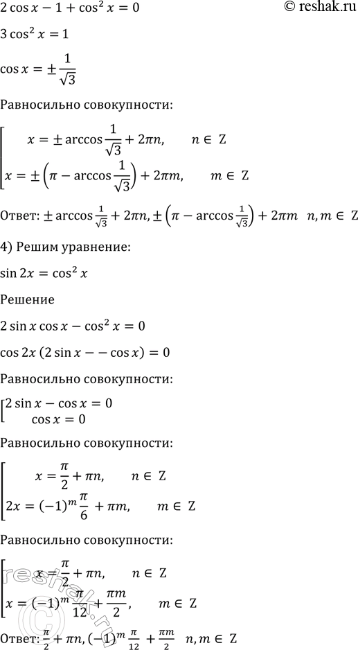4) sin 2x = cos2 x.