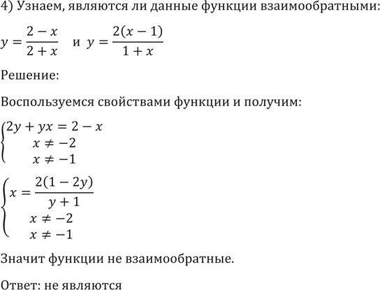 185. Являются ли заданные функции взаимно обратными: