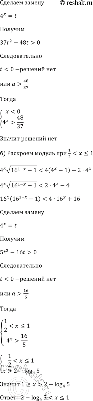 367. 4x ((корень (16^(1-x) - 1) +2 < 4|4x-1|
