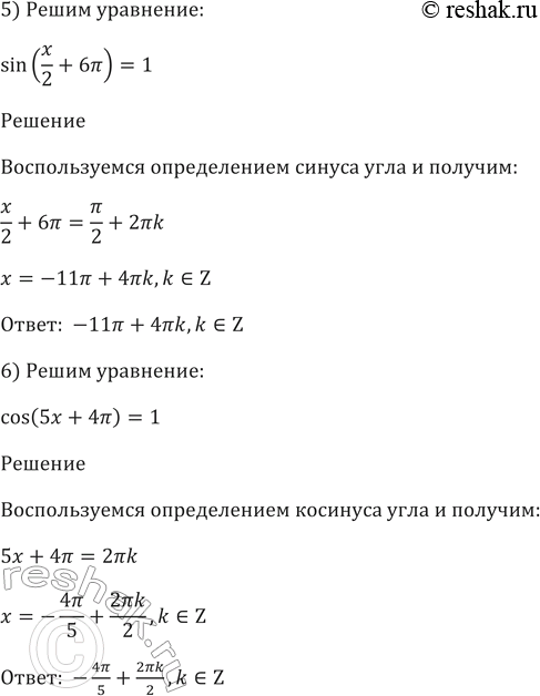 6) cos (5x + (4 пи/5)) =1.