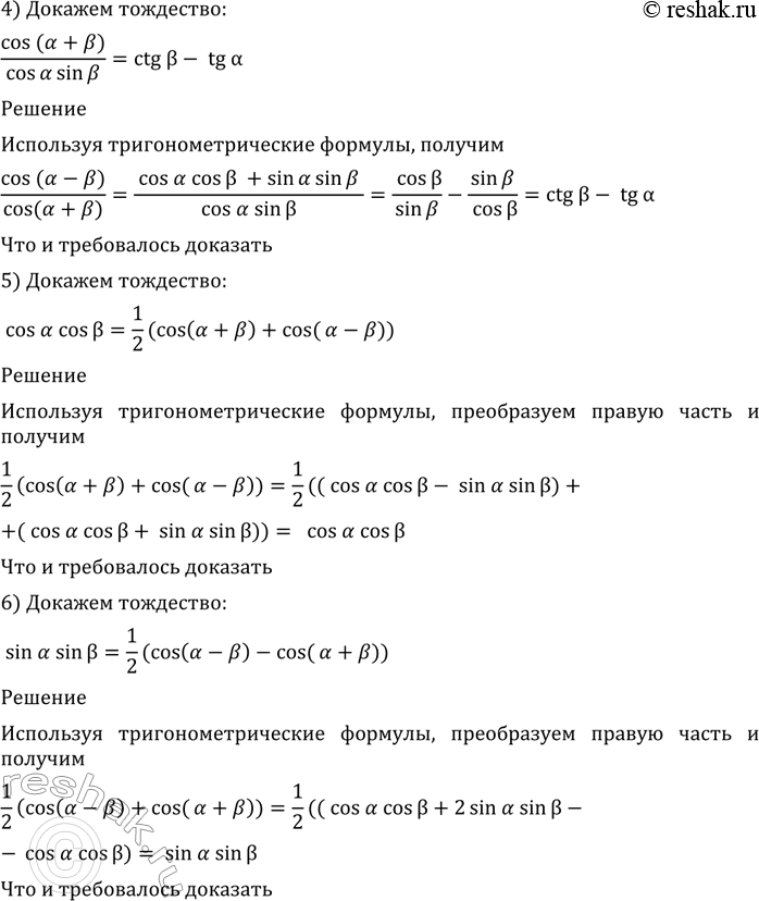 4) cos(a+b)/cosasinb = ctgb-tga;