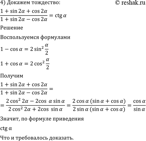 4) (1+sin2a+co2a)/(1+sin2a - cos2a) = ctga.