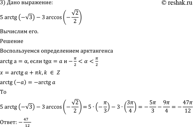 3) 5arctg(-корень 3) - 3arccos(-корень 2/2).