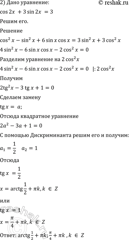 2) cos 2х + 3 sin 2х = 3.