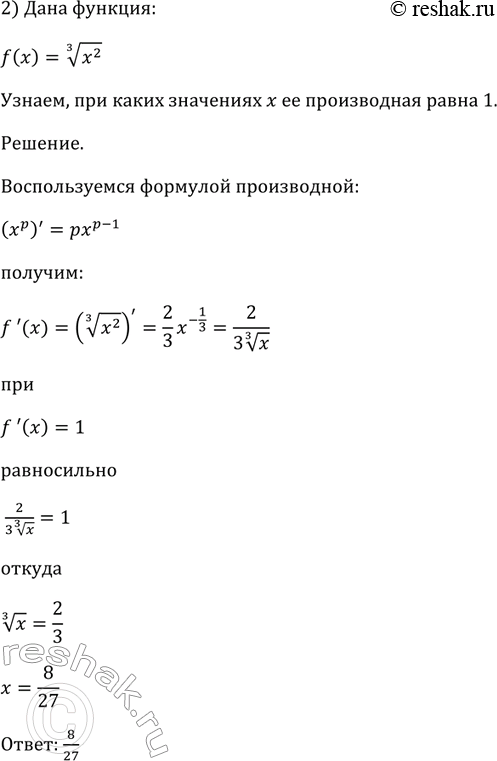 797 При каких значениях х производная функции f (х) равна 1, если: