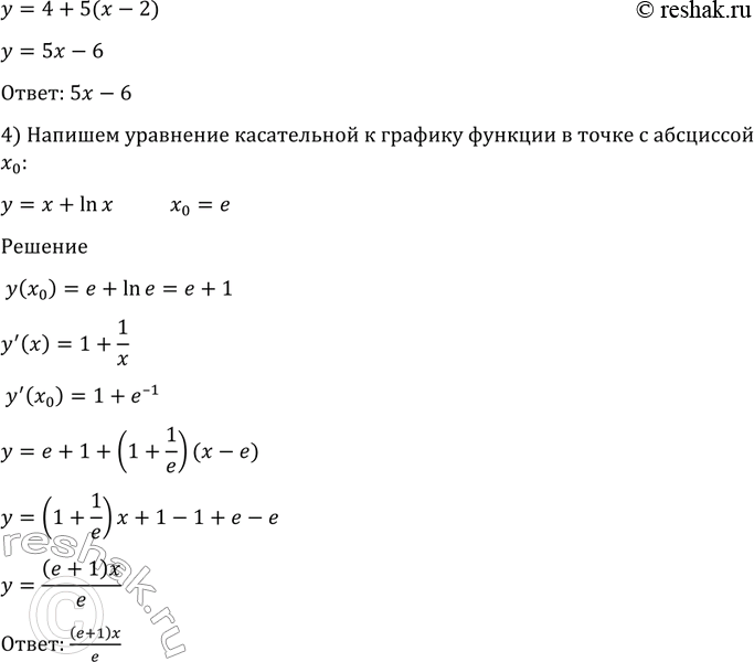 4) y=x+lnx, x0=e.