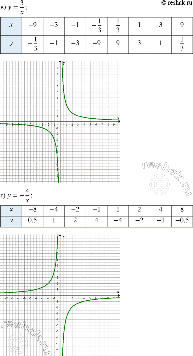 2) Проверьте друг у друга, верно ли построены графики функции у =k/x.