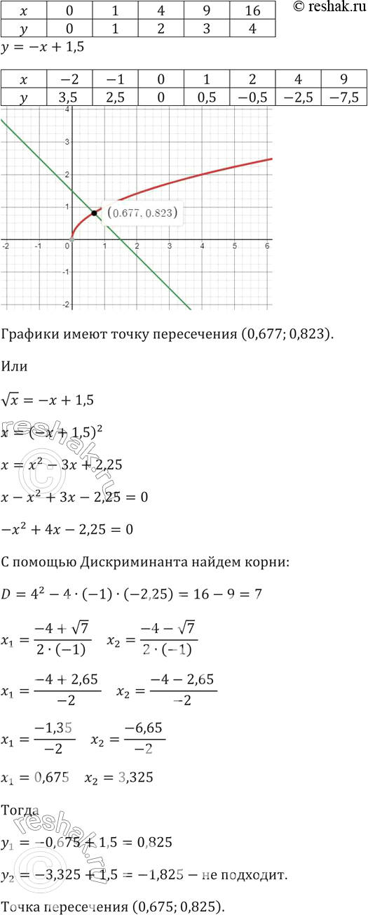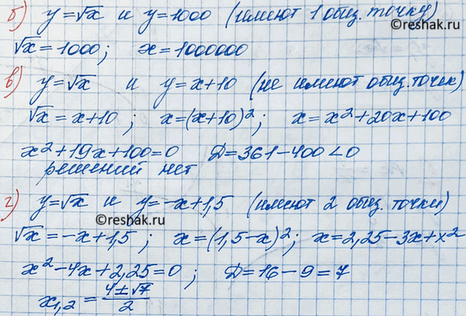3) Приведите примеры линейных функций, графики которых: не пересекают график функции у = корень x; пересекают его в одной точке; пересекают его в двух точках. Обсудите правильность этих примеров.