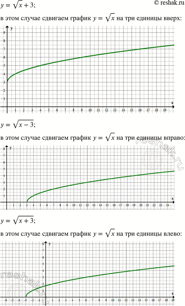 y = vx; y = vx - 3; y = vx + 3; y = v(x - 3); y = v(x + 3).