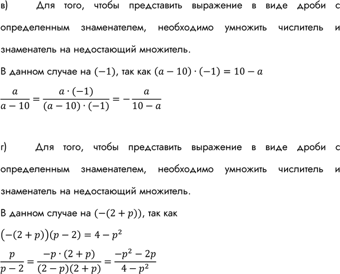 г) p/(p - 2) к знаменателю 4 - p^2;