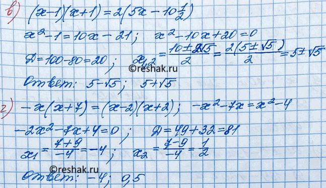 в) (x - 1) (x + 1) = (5x-10*1/2);