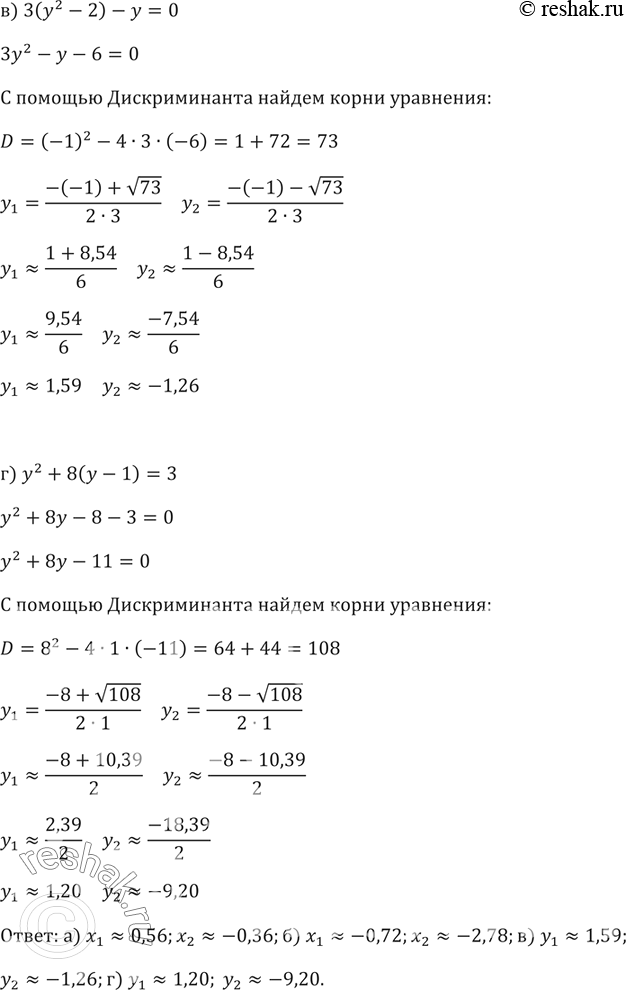 в) 3(у2 - 2) - у = 0;