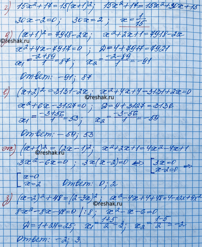 д) (х + 1)2= 7918- 2х;