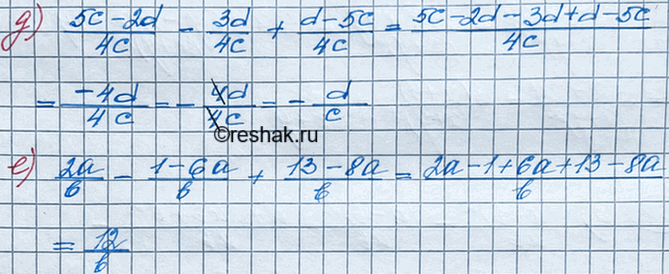 д) (5c - 2d)/4c - 3d/4c + (d - 5c)/4c;