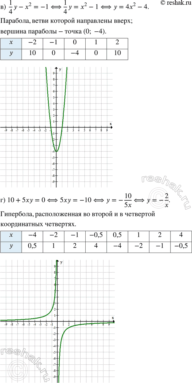 а) ху = -3; в) 1/4 у - х^2 = -1; д) 1 + 2х = 0;