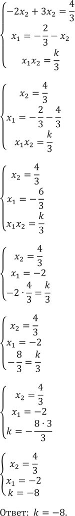 Известно, что х1 и х2 — корни уравнения 3x2 + 2х + k = 0, причём 2x1 = —3x2. Найдите к.
