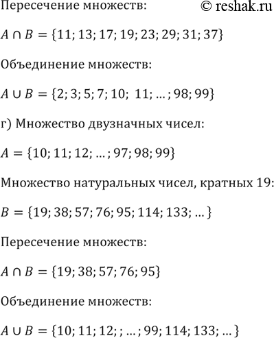 г) множества двузначных чисел и множества натуральных чисел, кратных 19.