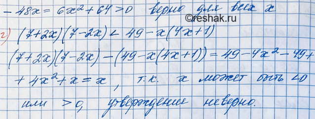 г) (7 + 2x)(7 - 2x) < 49 - x(4x + 1)?