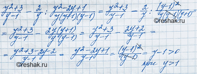 б) Докажите, что при у > 1 значение выражения (y2+3)/(y-1) - 2/y : (1/(y2-y) + (y-3)/(y2-1) положительно.