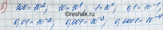 б) 100, 10, 1, 0,1, 0,01, 0,001, 0,0001 в виде степени с основанием 10.