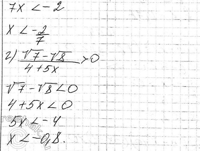 (корень 7 - корень 8)/ (4+5x) > 0.