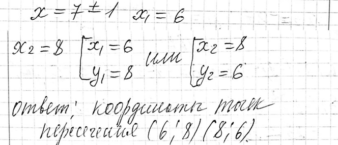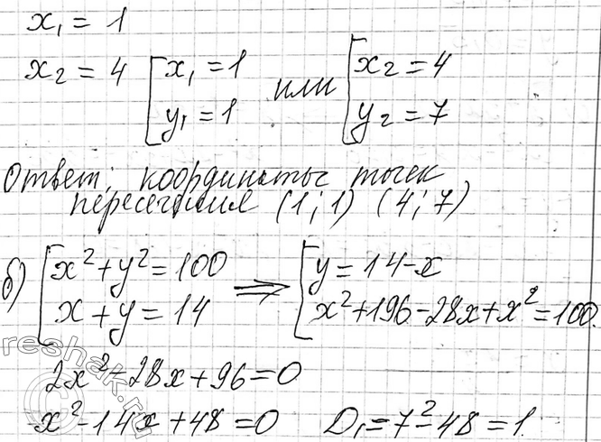 б) окружности х2 + у2 = 100 и прямой х + у = 14.