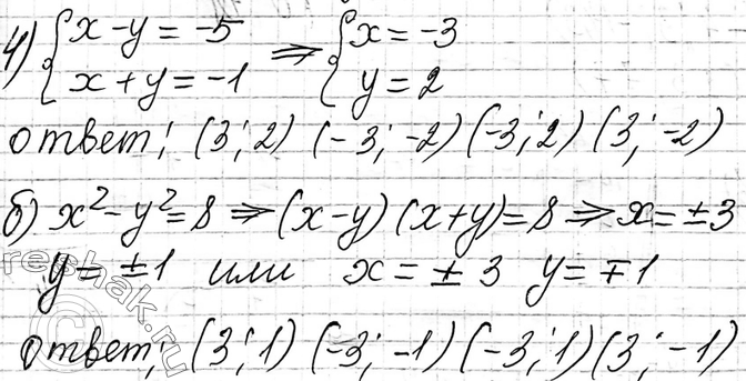522. Найдите целые решения уравнения: а) х1 - у2 = 5; б) х2 - у2 = 8.