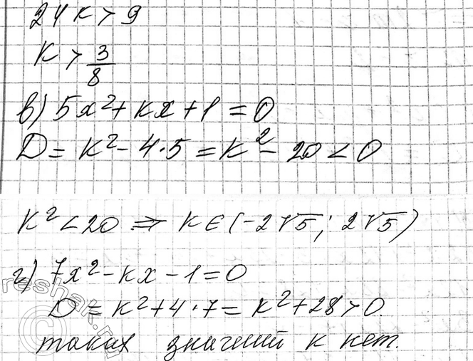 б) 6x2 - 3х + k = 0; г) 7x2 - kx - 1 = 0?