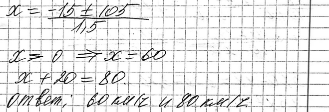 942. Две автомашины отправились одновременно из села в город, который удалён на 180 км. Одна автомашина пришла в город на 45 мин позже другой, так как её скорость была на 20 км/ч меньше. С какой скоростью шла каждая автомашина?