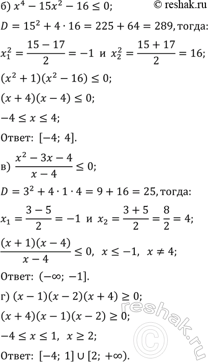 в) (x^2-3x-4)/(x-4)?0; г) (x-1)(x-2)(x+4)?0.
