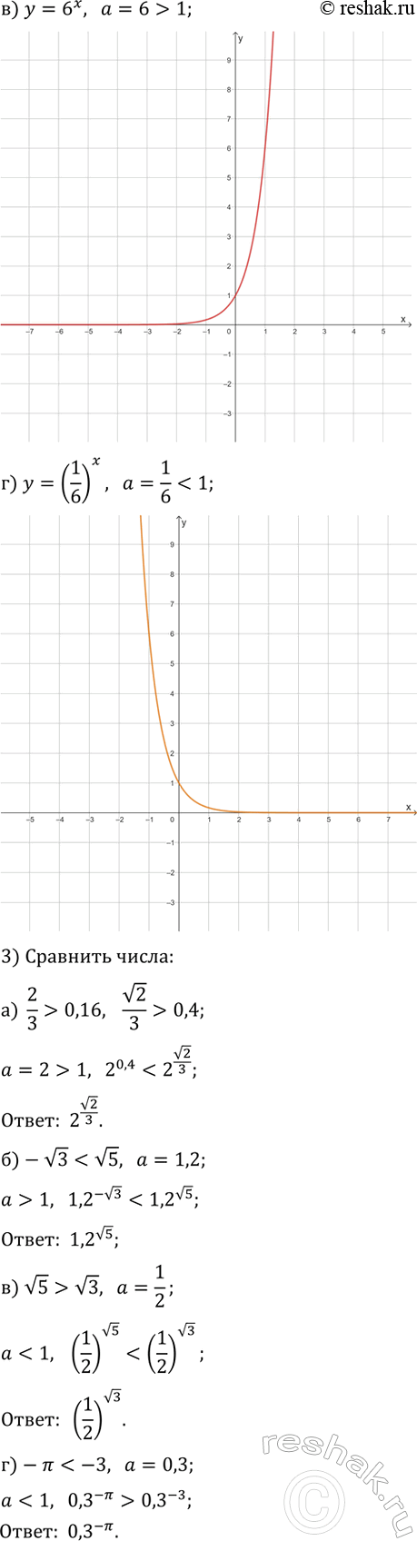 а) y=4^x; б) y=(1/4)^x; в) y=6^x; г) y=(1/6)^x.