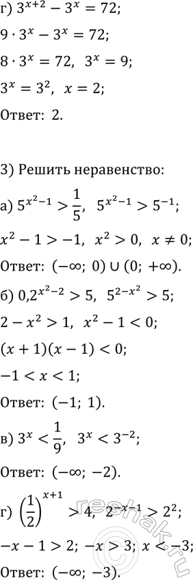 в) 3^x < 1/9; г) (1/2)^(x+1) > 4.